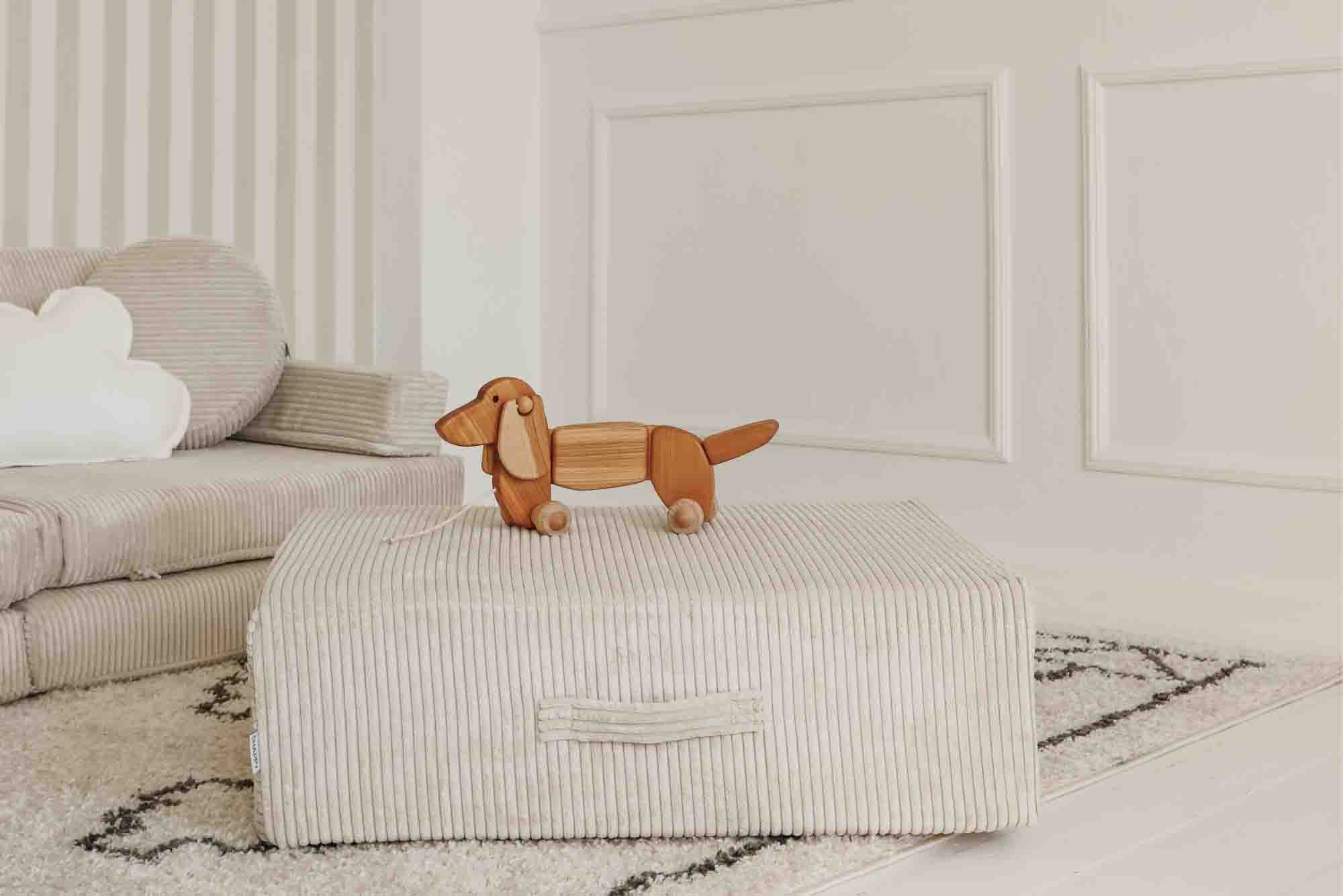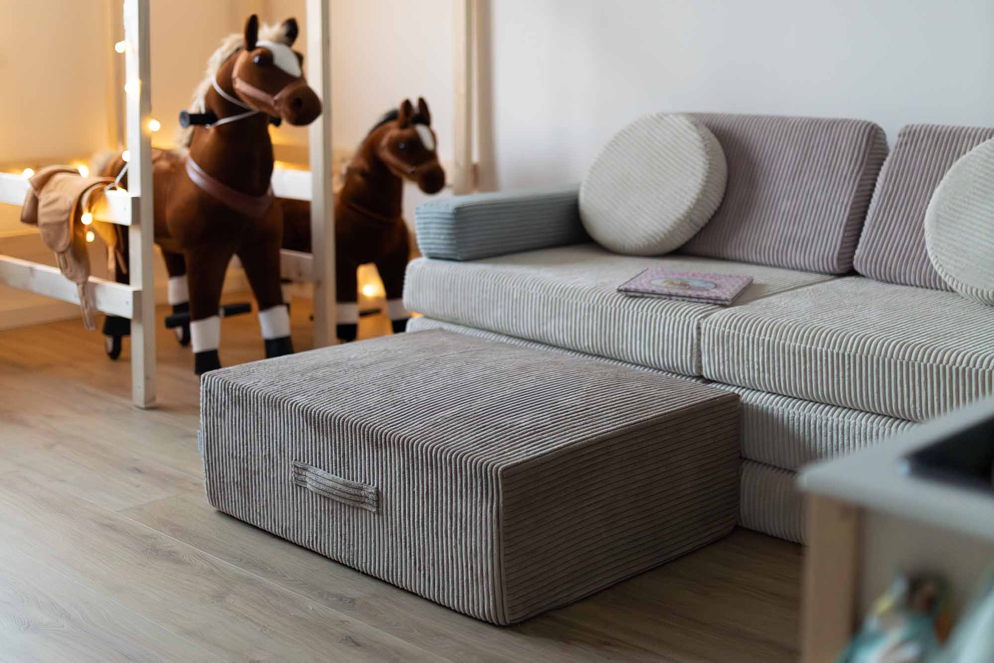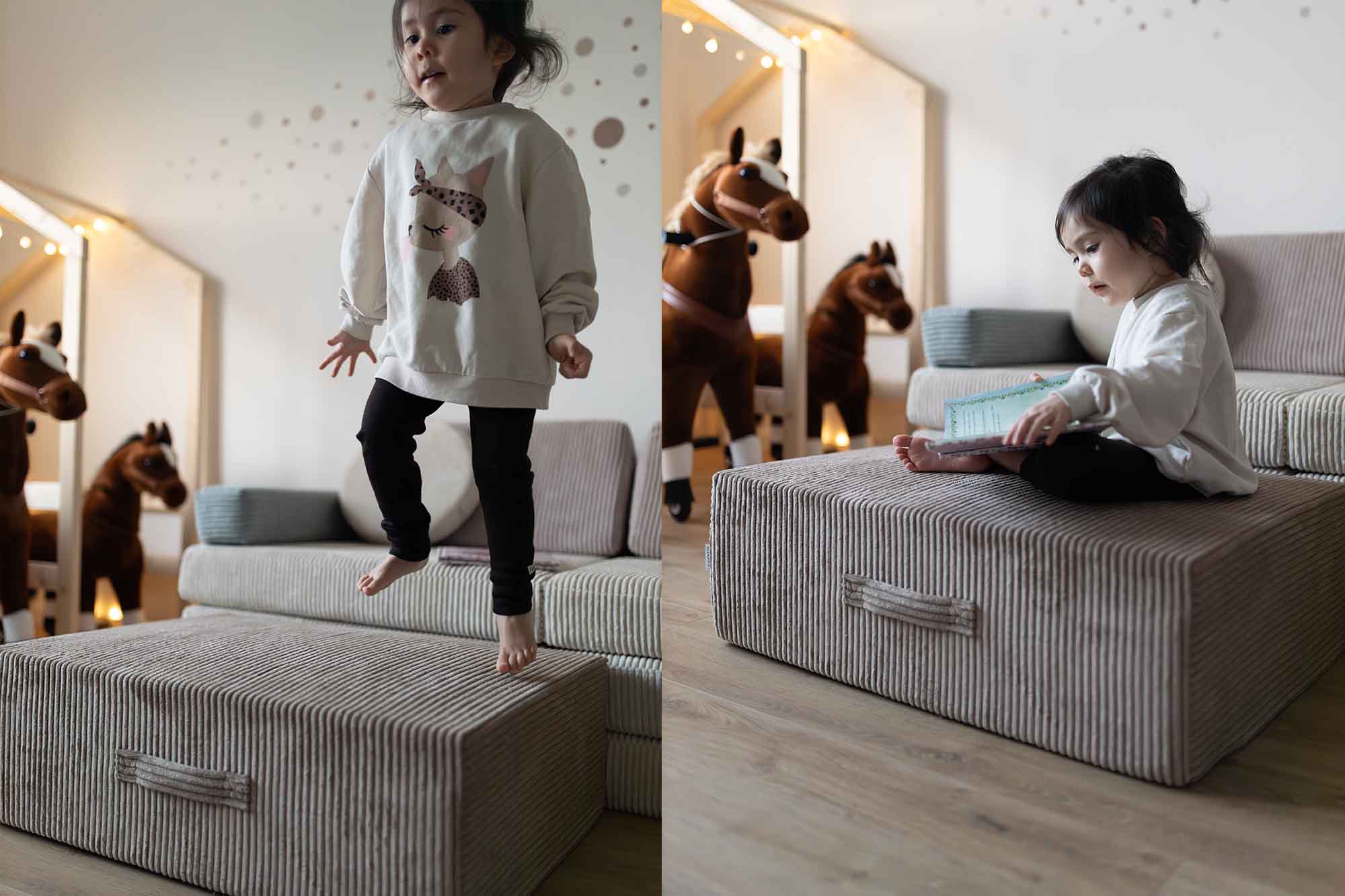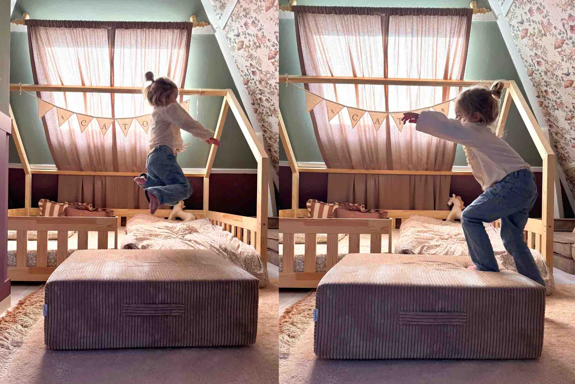 Absolutely. While it pairs perfectly with Shappy Play Sofa (same width cushion), the Trampoline can also be used standalone - as a bounce pad, pouf, or reading pillow.