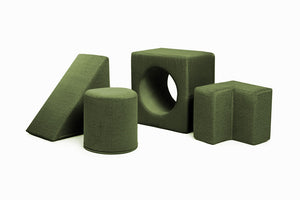 The playset is designed for children aged 1 and up, providing safe and engaging activities for various developmental stages. The playset is designed for children up to 5 years old, but older kids and adults can enjoy it too. For adult use, we recommend placing the pouf cylinder into the cube for added stability.