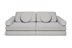 A modular play sofa that grows with your child. Build a sofa, a castle, a slide base - or a seamless play mat. Designed by parents in the EU, loved by families across Europe.